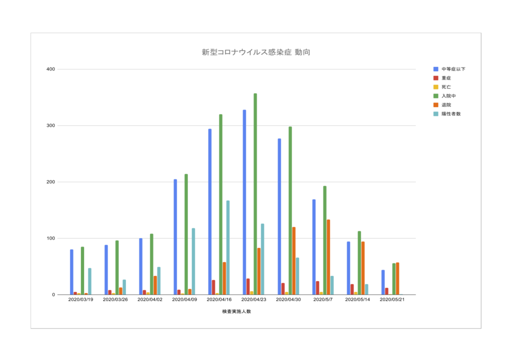 5/21、兵庫県は緊急事態宣言が解除されました。人の動きが増えることは陽性者数を増加させる要因であったり、季節や気温の変化はSARS-CoVの感染力を鈍らせ陽性者数を減らす要因になるかもしれないなど、不確定な要因が交錯します。