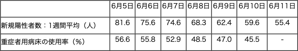 PCR検査の新規陽性者数はこの1週間(6/3から6/310で⊿-26人で減少傾向が続いています