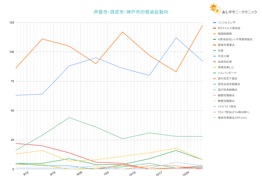 兵庫県感染症情報センターからリリースされている週報から芦屋市・西宮市・神戸市の情報をピックアップして集計したものと、兵庫県のCOVID-19関連のデータを集計したものを配信しています。