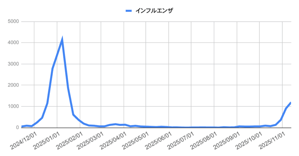5年程度の周期性の流行を認める傾向があり、前回の当地での流行はまさに2019年末〜2020年2月頃でした。