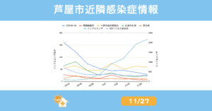 兵庫県感染症情報センターからリリースされている週報から芦屋市・西宮市・神戸市の情報をピックアップして集計したものを若干のコメントをつけて配信しています。