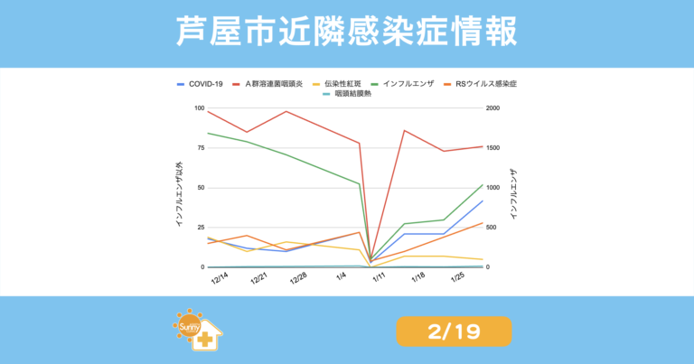 芦屋市・西宮市・神戸市の感染症情報(02/19)