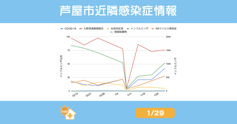 芦屋市・西宮市・神戸市の感染症情報(01/29)